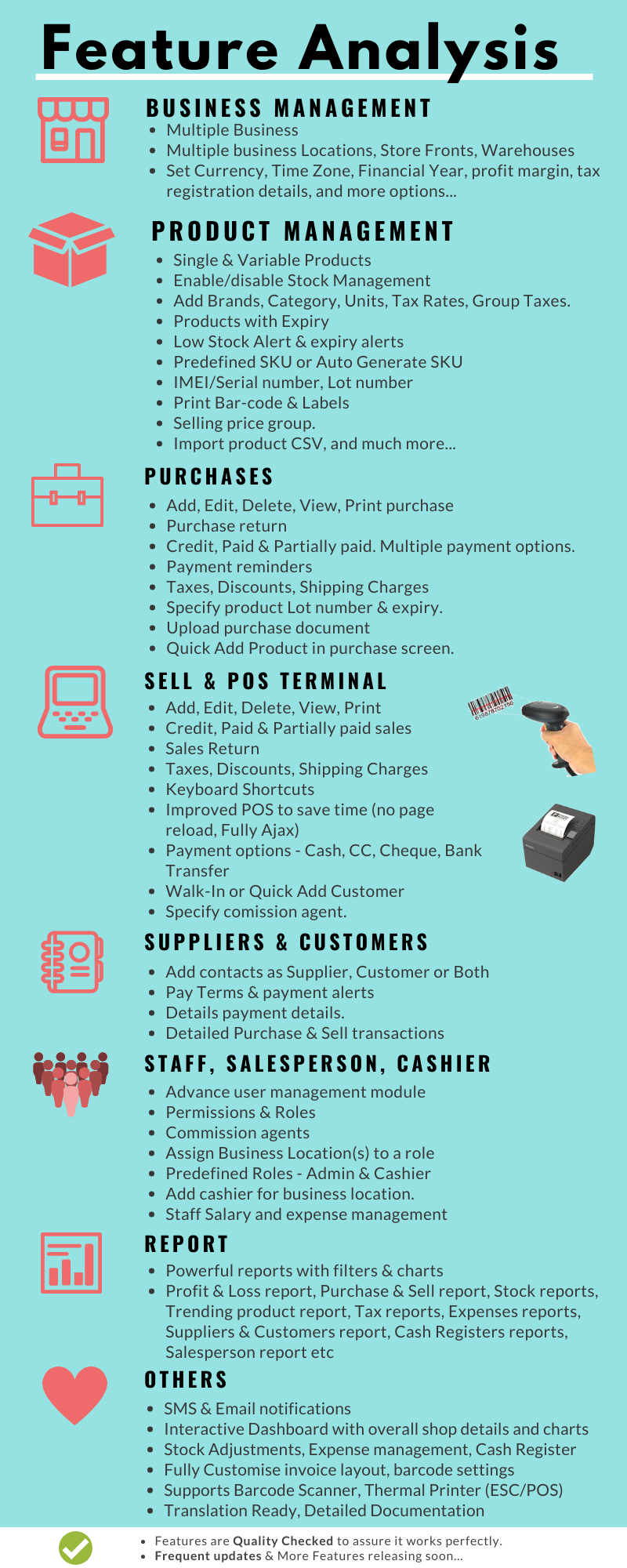 - Manage Brands, Tax Rate & Tax groups, Units, Category & Sub-Category
